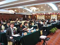 カンファレンスは2日間の日程でおこなわれ、1日目の午前中はオープンニング、基調講演がありました。基調講演はオランダから参加のテストコンサルタントKees Blokland氏の「No Risk, No Test」、中国精華大学教授 郑人杰(Zheng Renjie)氏の「ソフトウェア品質リスクによる障害に備えよ」などがありました。Blokland氏はリスクベースドテストの有用性・方法についての講演で、Zheng氏は前述のように中国でのソフトウェア事情とそれに対する第3者検証による認証について講演がありました。会場では聴講者約200名が中国から参加し、発表者はアメリカ、インド、オランダ、韓国、日本と国際色豊かなオープニングでした。